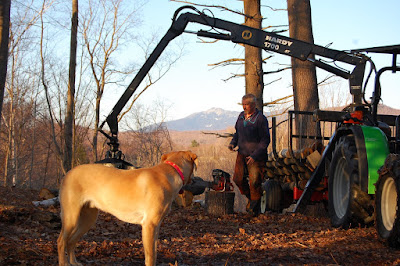 This is Bill Torrey and his dog, with his forwarder in West Bolton. Bill has been a logger since he was a teenager. Hearing his story I believe he is a logger by vocation. It is something he loves and is committed to doing intelligently, in every sense of the word. He also loves to spend time hunting in the Adirondacks. I will be doing a painting of Bill in this spot, sharpening his saw.