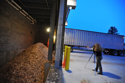 Two weeks ago, taking pictures of Geoge unloading wood chips at Middlebury College's plant. The painting was finished Monday night, two days ago.
